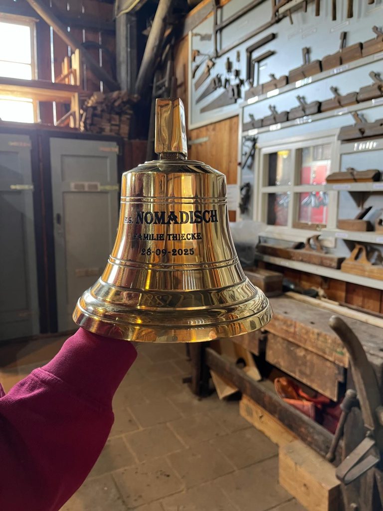 De Nomadisch is in 1928 gebouwd op de scheepswerf van H.P.J. Thiecke in Martenshoek. Op zondag 28 september werd op de Historische Scheepswerf Wolthuis een Thiecke familiedag georganiseerd. Uiteraard werd ook een bezoek gebracht aan de Nomadisch en om de band tussen de familie en de Stichting Nomadisch te verstevigen werd ons een prachtige koperen scheepsbel aangeboden. ’s Middags was er de presentatie van het boek “Boeren, Werfbazen en Ondernemers” over de geschiedenis van de familie, geschreven door Marij Thiecke. In dit boek is ook een hoofdstuk gewijd aan de Nomadisch.
